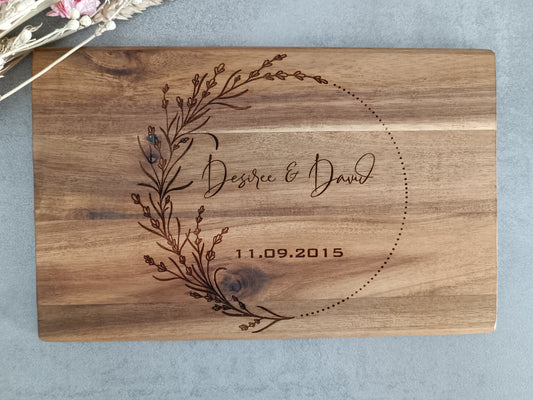 Brettchen mit Namen und Hochzeitsdatum | Servierbrett |Frühstücksbrettchen | Hochzeit | Hochzeitsgeschenk |Frühstücksbrettchen personalisiert | Holz