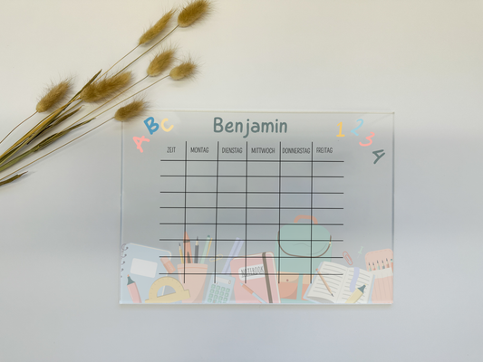 Stundenplan abwischbar mit Wunschnamen/Geschenk zur Einschulung / Schule