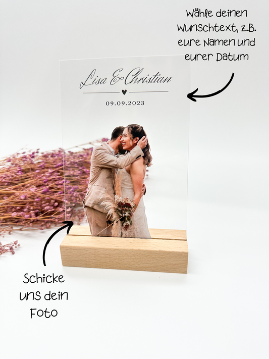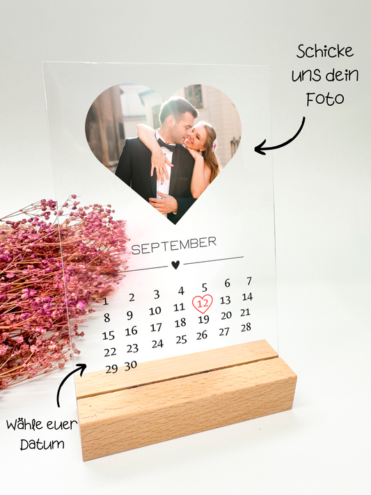 Hochzeitsfoto auf Acrylglas mit Kalender | Hochzeitsgeschenk | Geschenk zur Hochzeit