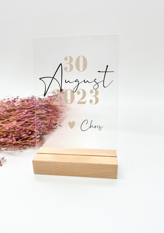 Hochzeitsdatum & Namen auf Acryl | Hochzeitsgeschenk | Geschenk zur Hochzeit | personalisiertes Hochzeitsgeschenk