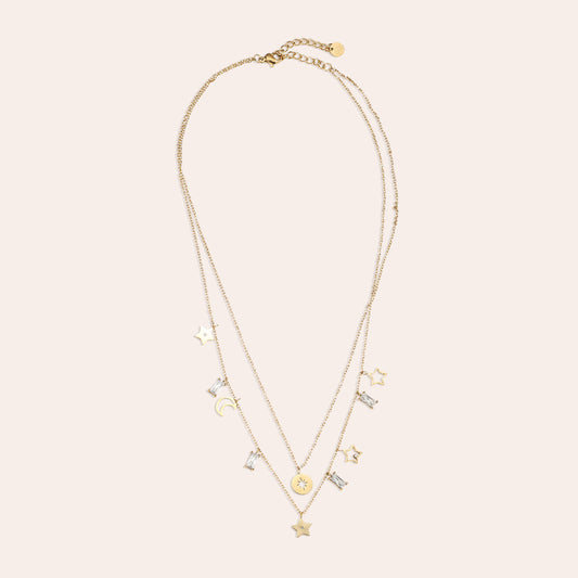 Two Layers Stars Moon Diamonds Halskette aus Edelstahl | 43 cm