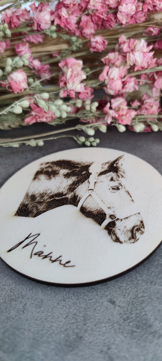 Fotogravur auf Holz | Fotogravur Pferd | Fotogravur Hund | Fotogravur Katze | Fotogravur Kind