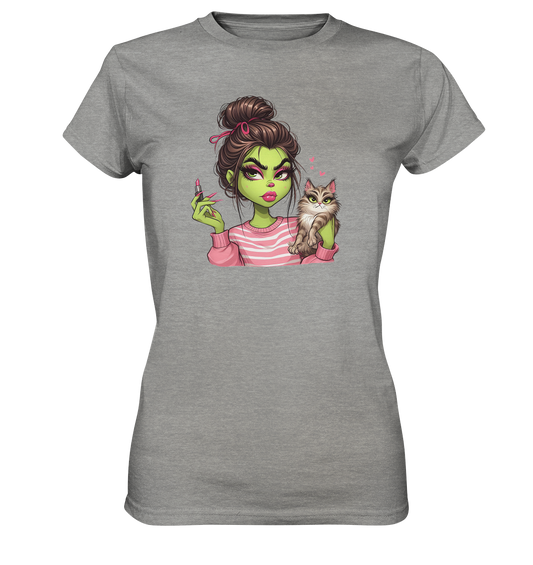 Grinch Mädchen mit Lippenstift & Katze - Ladies Premium Shirt
