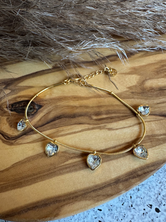 Diamand Hearts In Thin Chain Armband aus Edelstahl | 16 cm