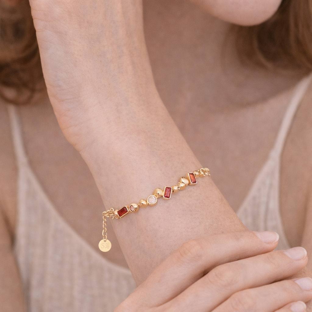 Das Armband besticht durch sorgfältig platzierte, glitzernde Glas-Details, die im Licht zauberhaft schimmern und deinem Handgelenk einen edlen Glanz verleihen – perfekt für Alltag, Office oder besondere Anlässe.